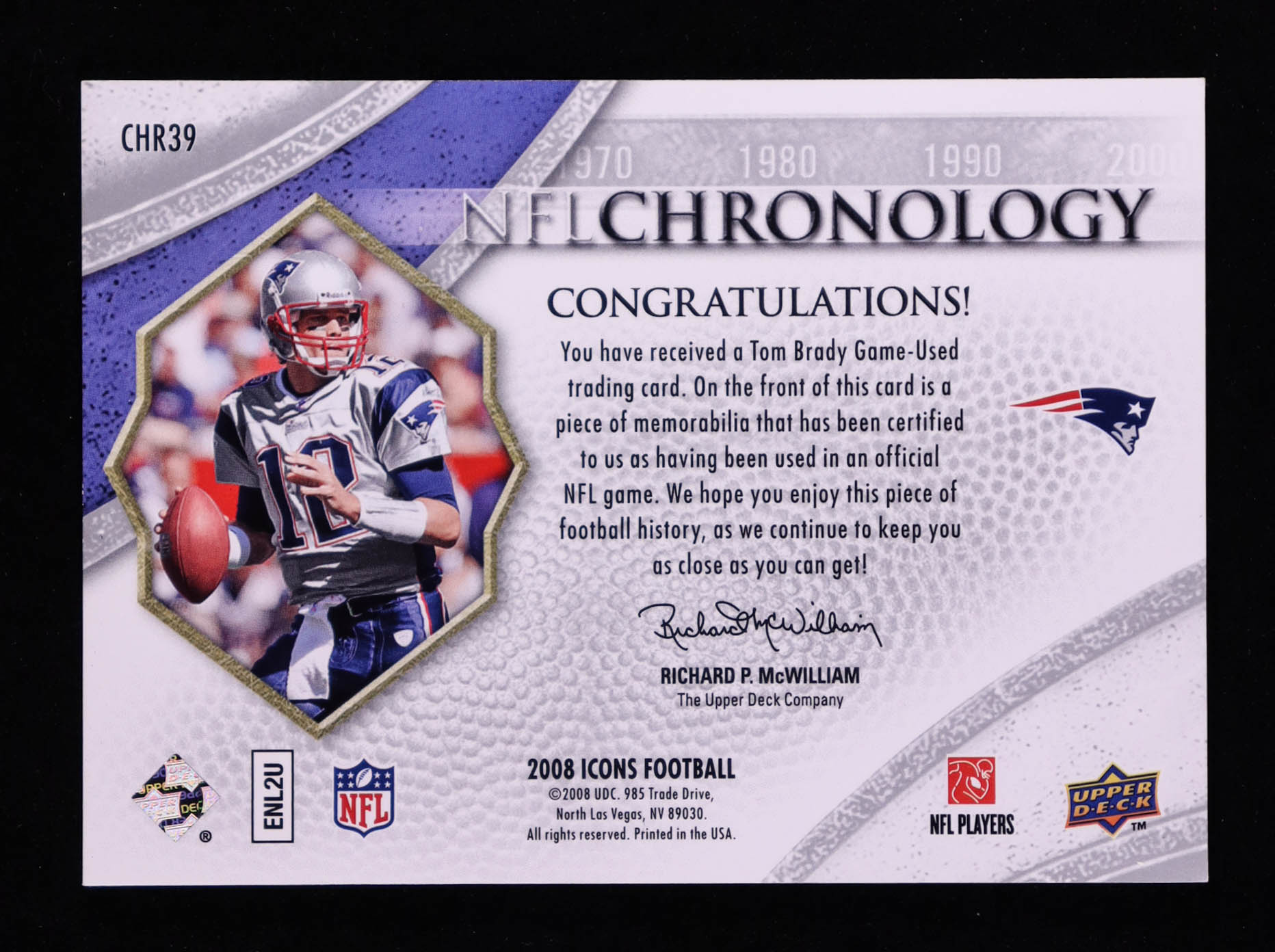 Tom Brady 2008 Upper Deck Icons NFL Chronology Jersey Gold #CHR39 #11/50