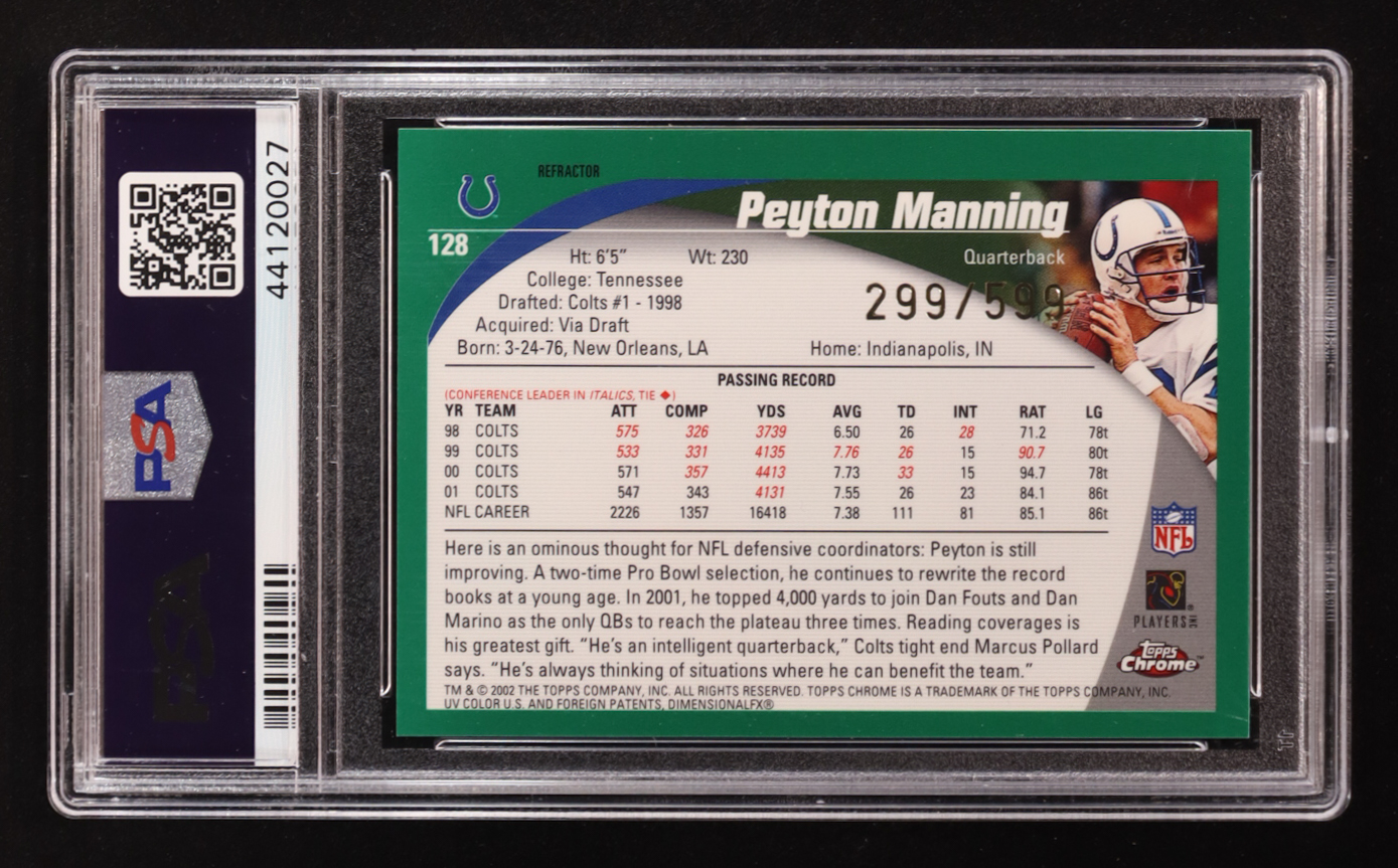 Peyton Manning 2002 Topps Chrome Refractors #128 #299/599 (PSA 9)
