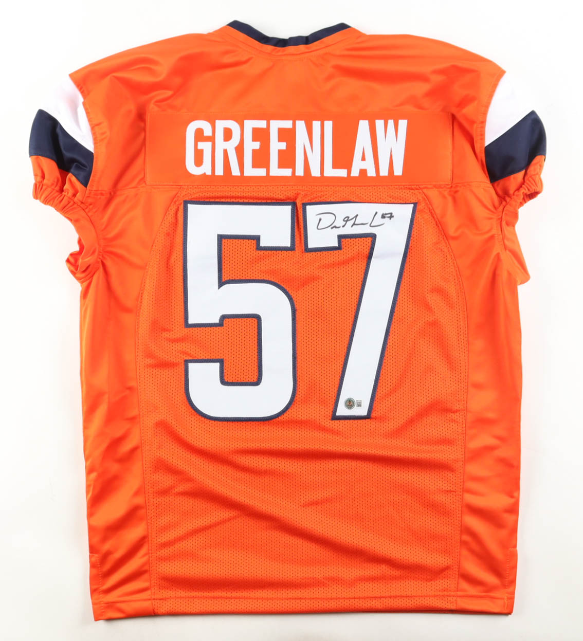 Custom jersey with everything sewn on, size XL. Hand-signed by Dre Greenlaw.