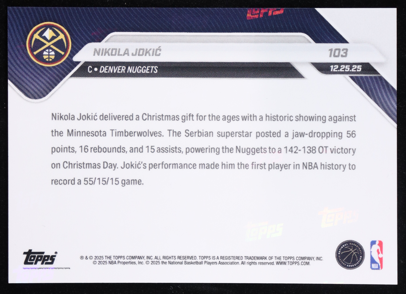 Nikola Jokic 2025-26 Topps Now Christmas #103