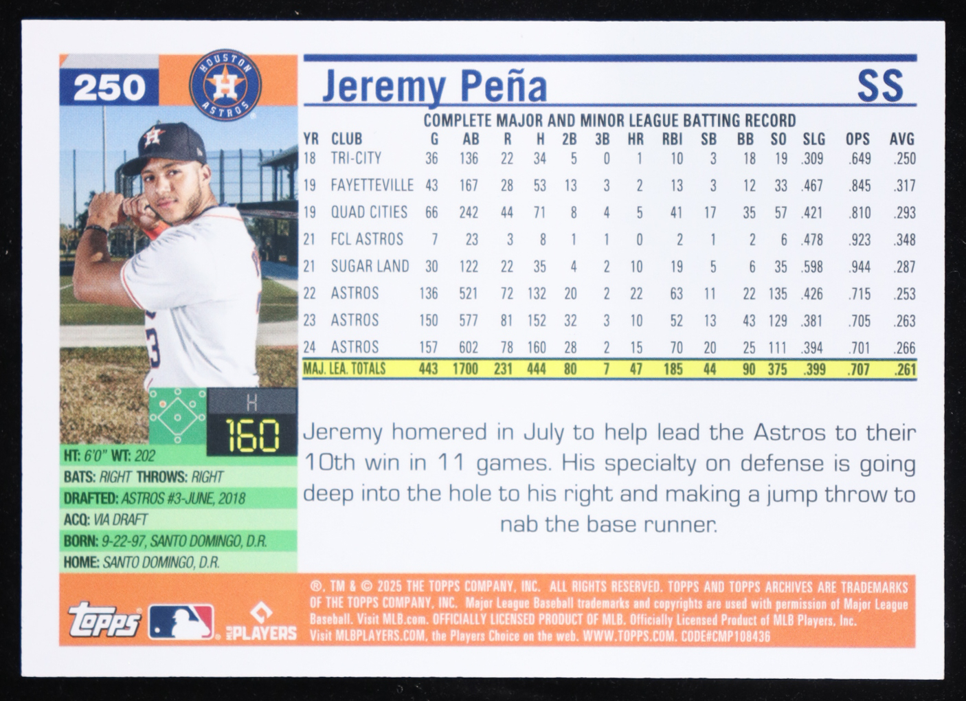 Jeremy Pena 2025 Topps Archives Green Foilboard #250 #47/99