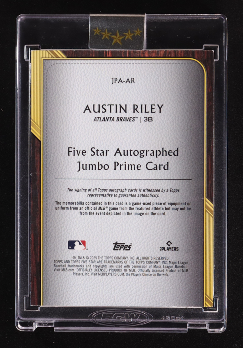Austin Riley 2025 Topps Five Star Jumbo Prime Autographs Silver Rainbow Game-Used #JPAAR #4/5