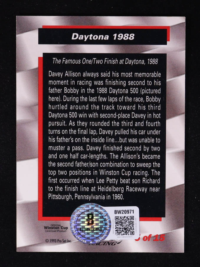 Davey Allison / Bobby Allison Signed 1993 Pro Set Finish Line Racing 1988 Daytona #5