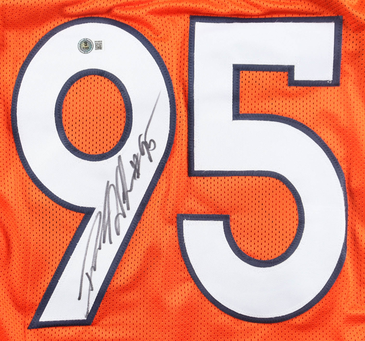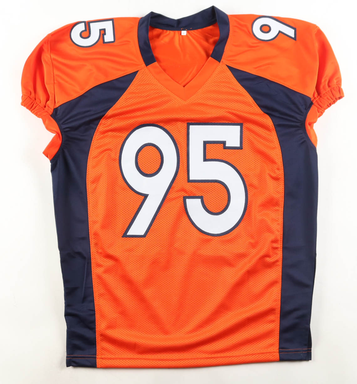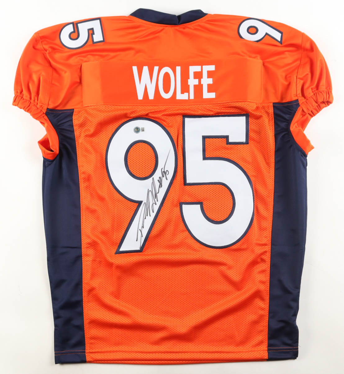 Custom jersey with everything sewn on, size XL. Hand-signed by Derek Wolfe.