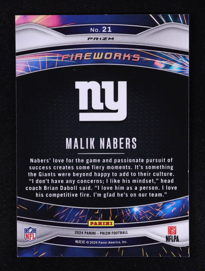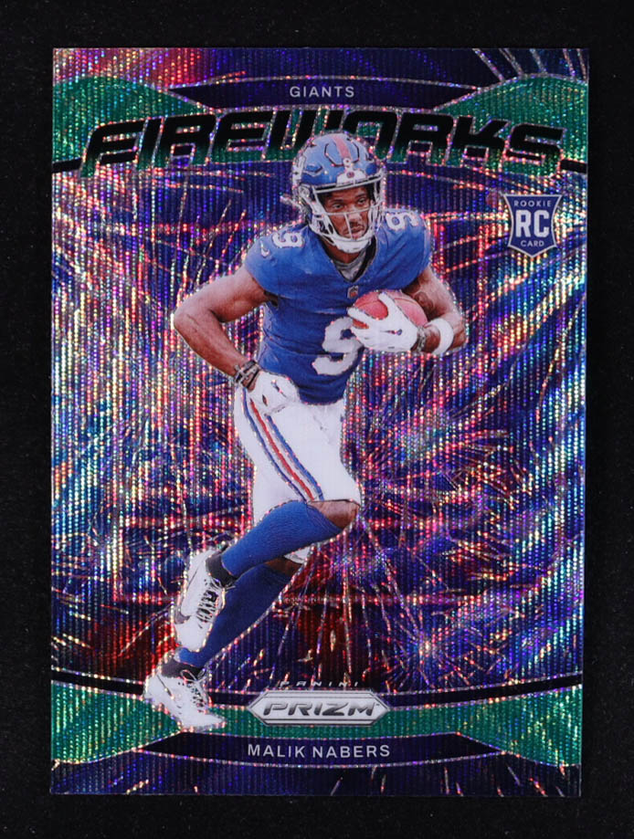 Malik Nabers 2024 Panini Prizm Fireworks Prizms Green Wave #21 RC