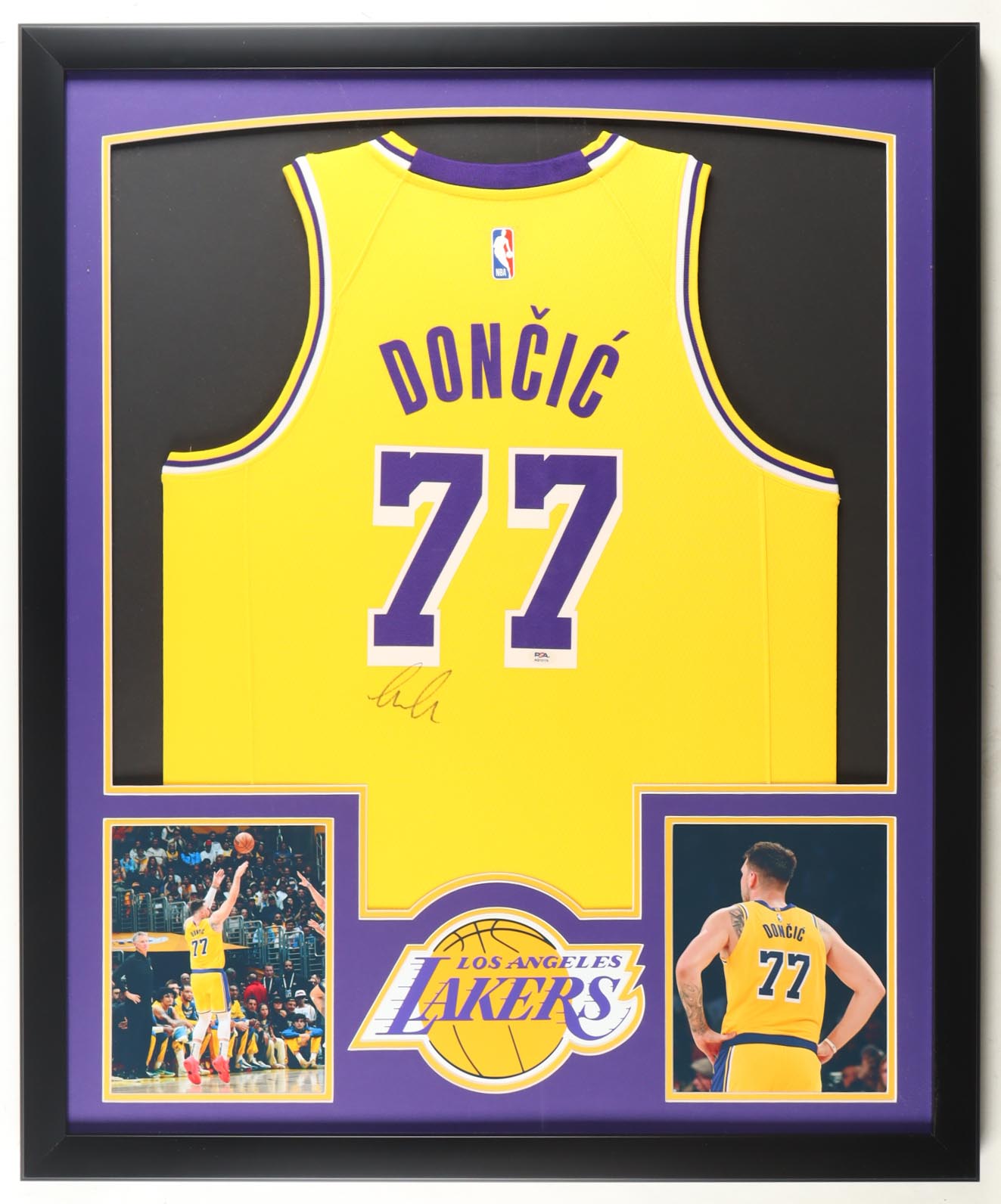 Luka Doncic Signed Custom Framed Lakers Jersey Display (PSA)
