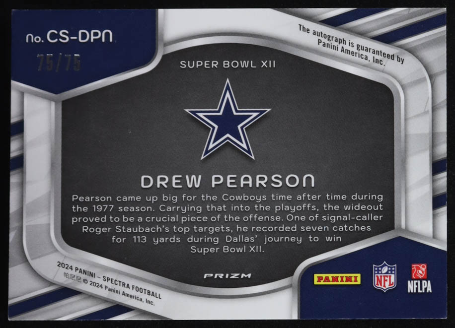 Drew Pearson 2024 Panini Spectra Champion Signatures Supernova #15 #75/75