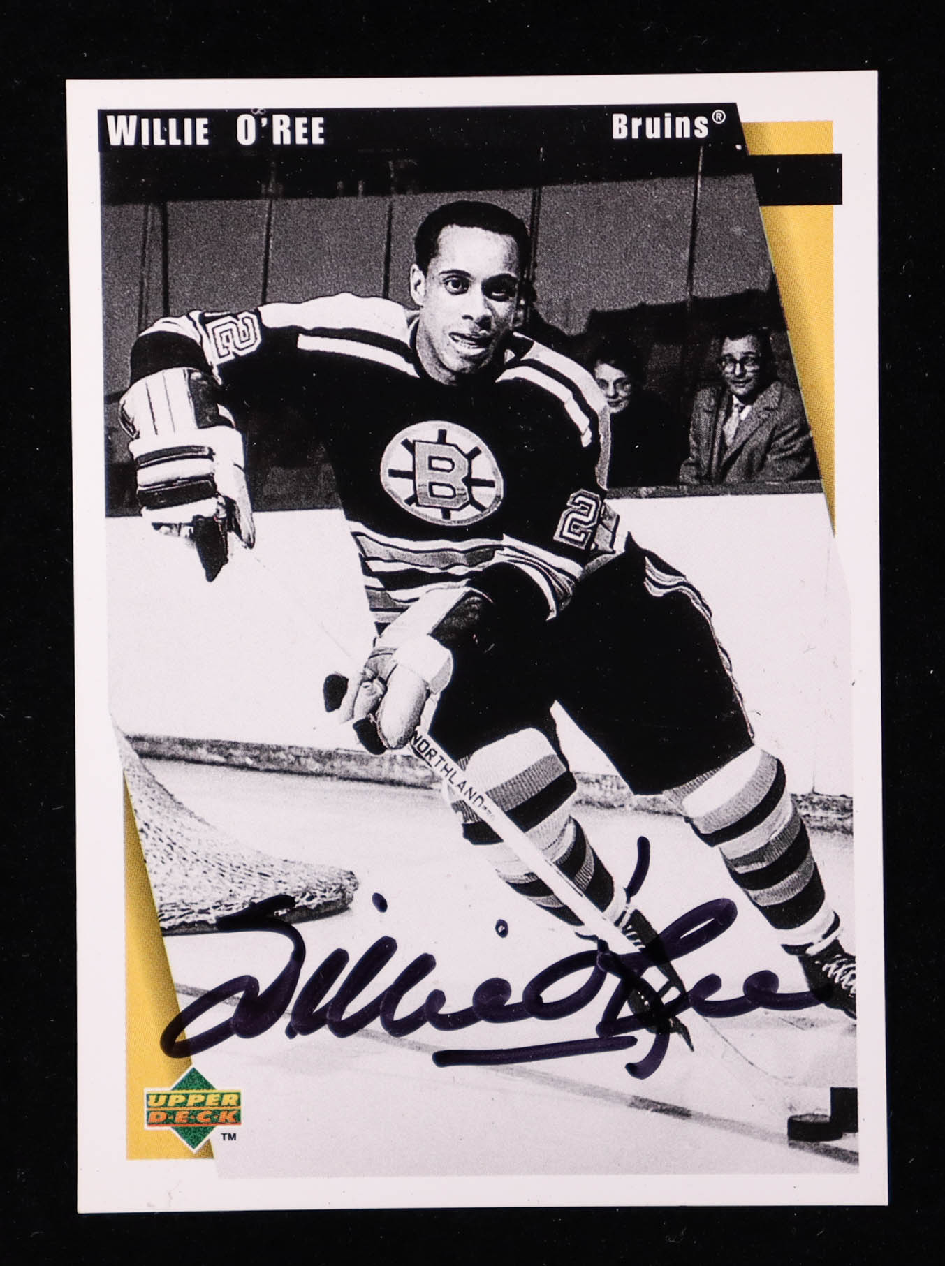 Card has been hand-signed by Willie O'Ree (Boston Bruins, HOF). Please see photos for details regarding the condition of the card.