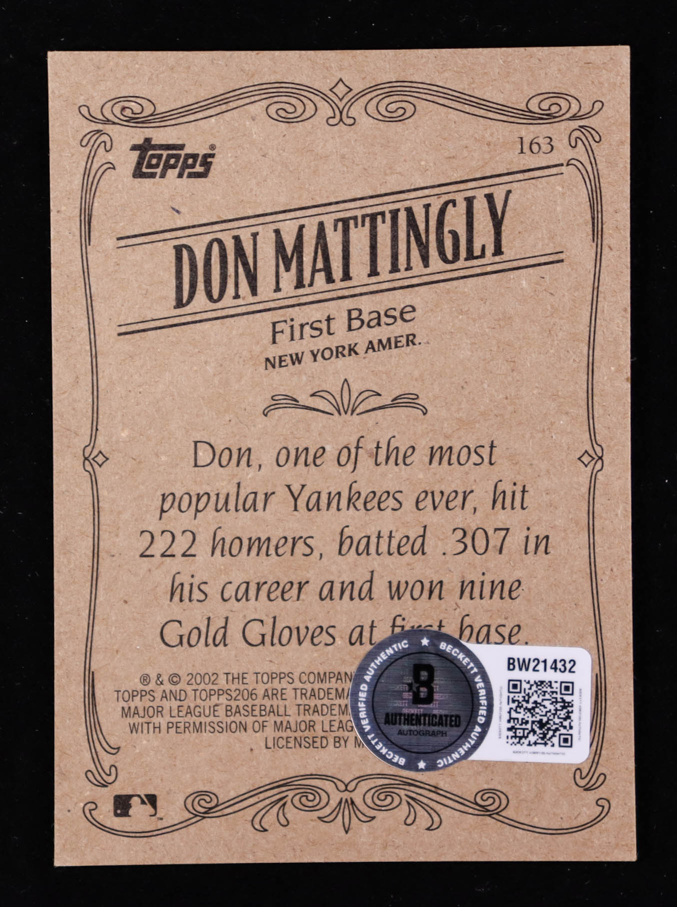 Don Mattingly Signed 2002 Topps 206 RET #163 (Beckett)