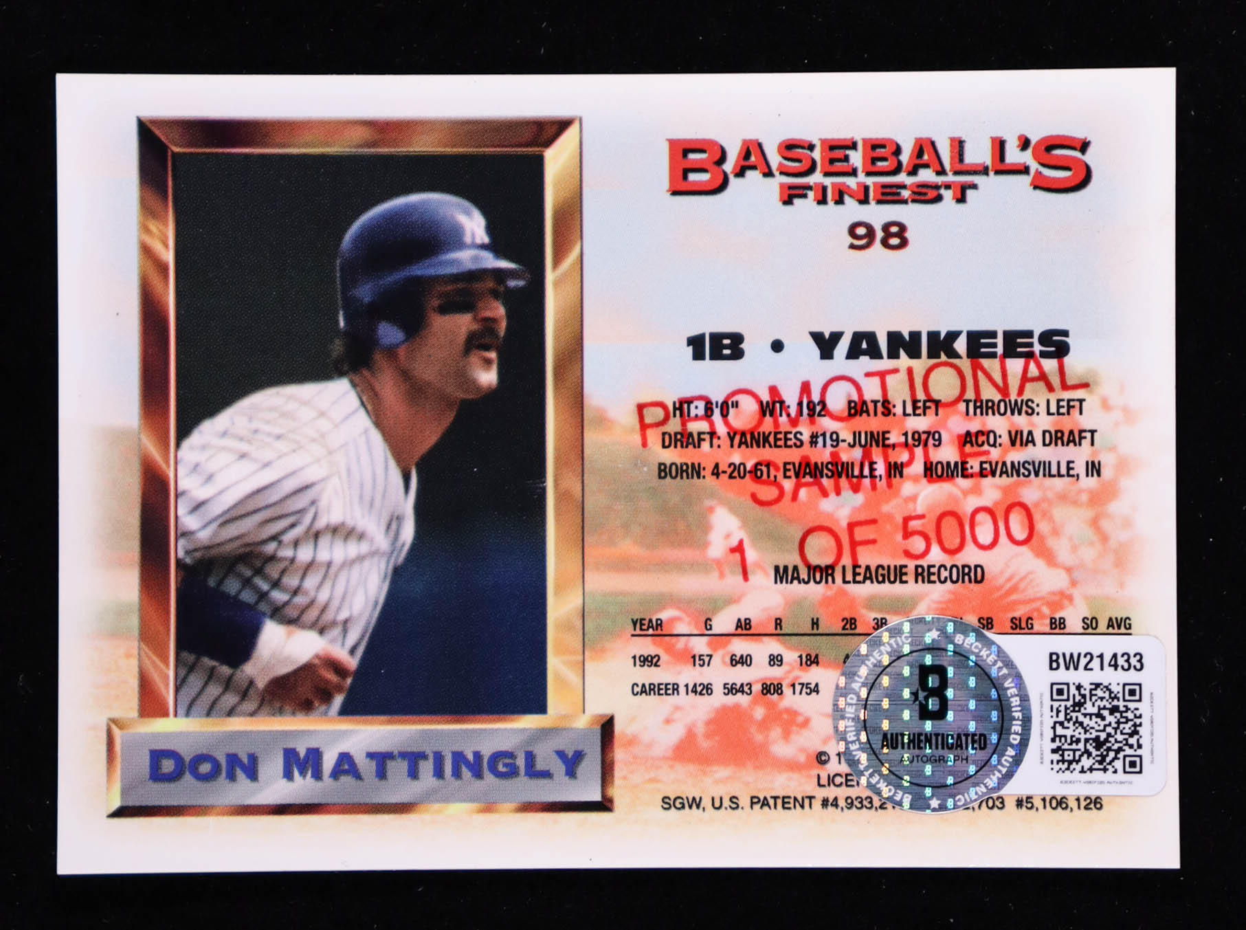Don Mattingly Signed 1993 Finest Promos AS #98 #/5000 (Beckett)