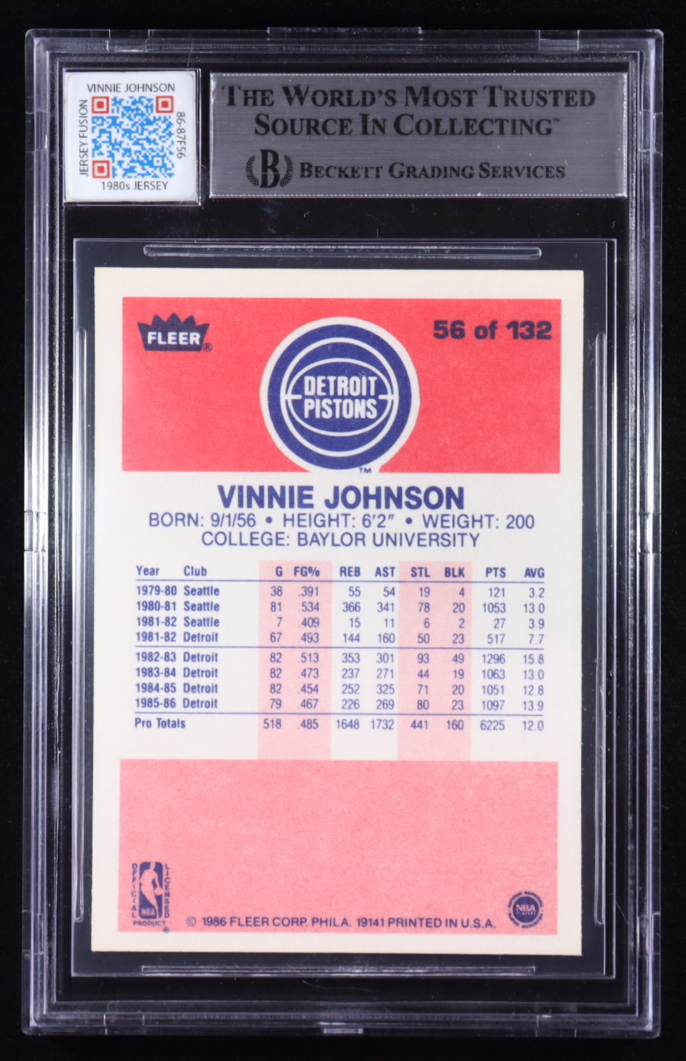 Vinnie Johnson 1986-87 Fleer Premier Jersey Fusion Game Used Patch #56