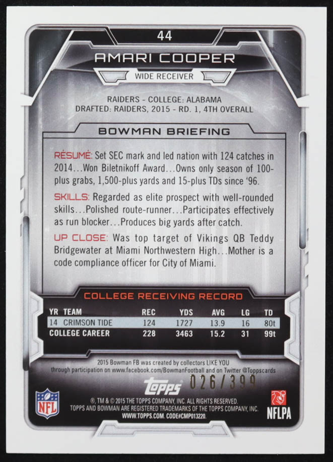 Amari Cooper 2015 Bowman Gold #R44 #026/399 RC