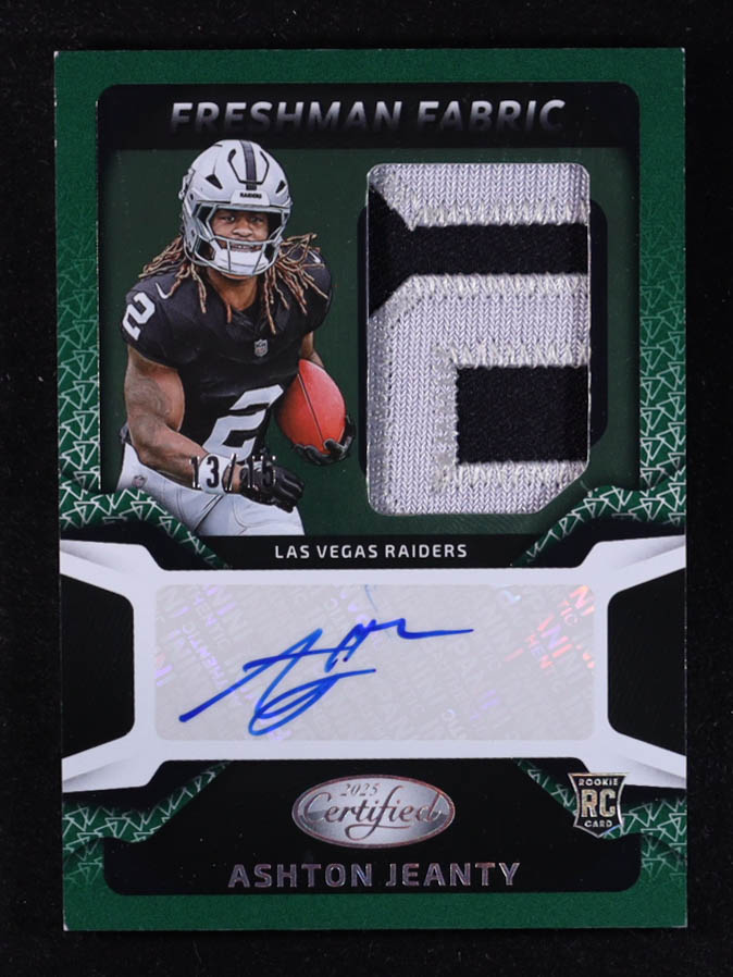 Ashton Jeanty 2025 Certified Freshman Fabric Mirror Signatures Green Etch #2 #13/15 RC