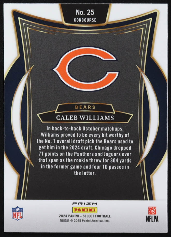 Caleb Williams 2024 Select Prizm Red and Blue Shock #25 RC