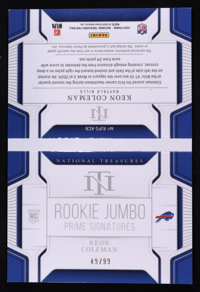 Keon Coleman 2024 Panini National Treasures Rookie Jumbo Prime Signatures Booklet #13 RC #49/99