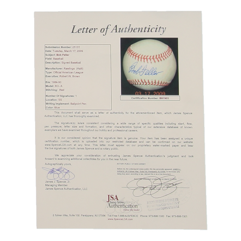 Bob Feller Signed OAL Baseball (JSA)