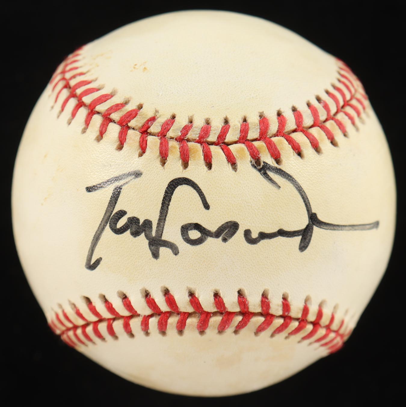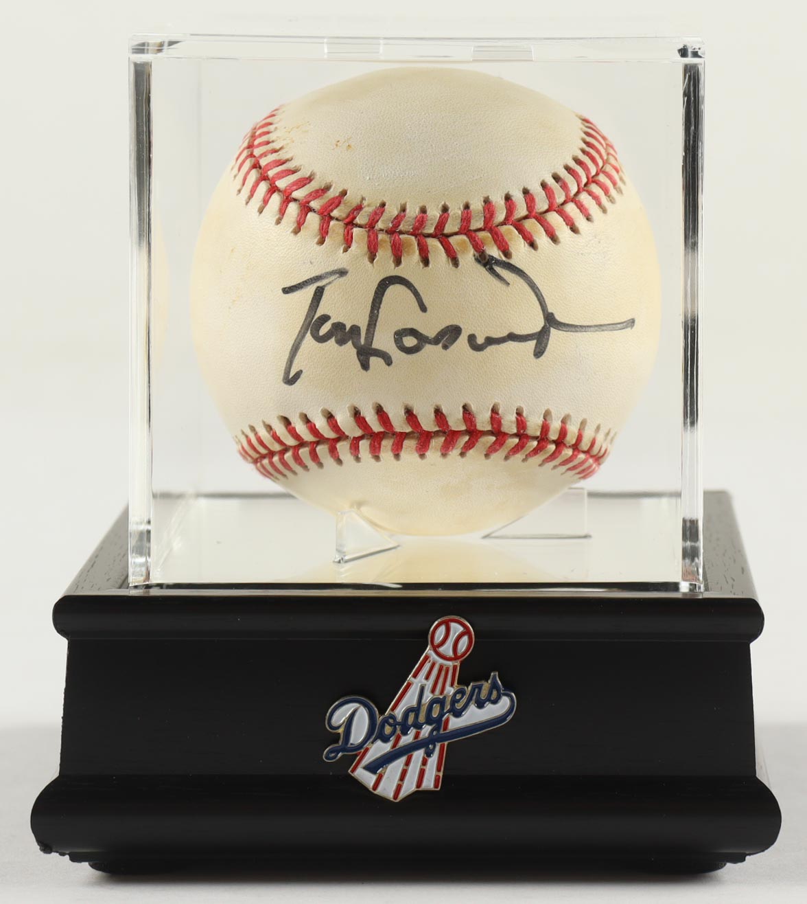 Rawlings Official National League Baseball. Hand-signed by Tommy Lasorda (D. 2016, Los Angeles Dodgers, HOF). Note that the display case is included in the listing. Please see photos for more details regarding the condition of the item as the baseball shows signs of natural toning, staining and fading.