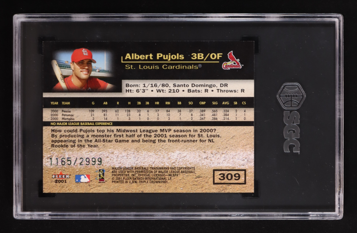 Albert Pujols 2001 Fleer Triple Crown #309 RC #1165/2999 (SGC 9.5)