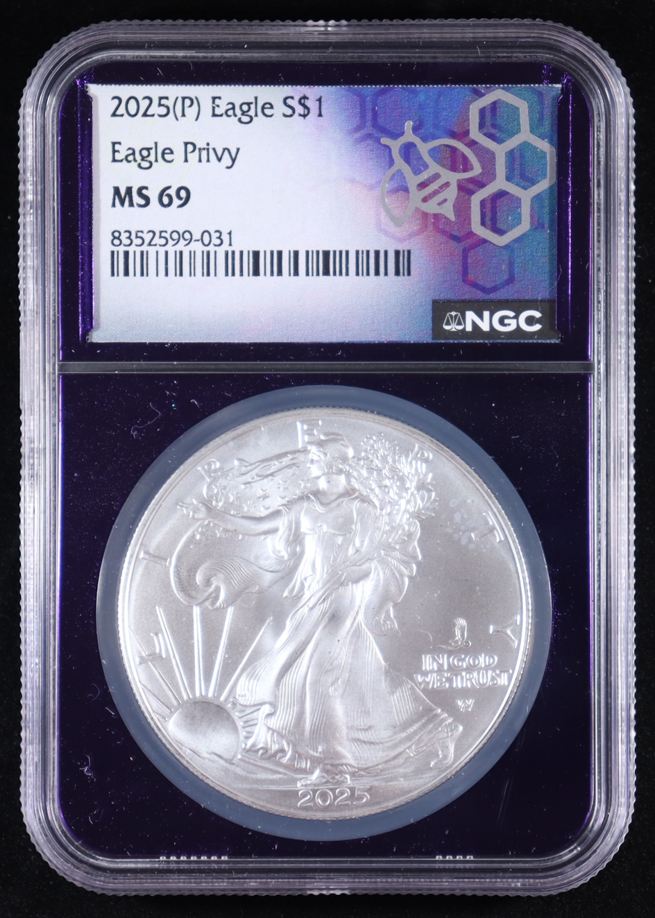 2025(P) American Silver Eagle, Eagle Privy #/500,000 (NGC MS69)