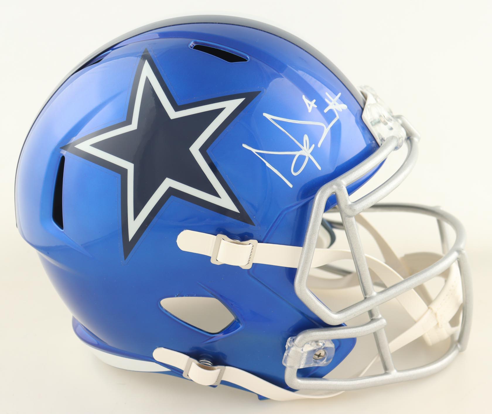 Riddell Dallas Cowboys Full-Size Flash Alternate Speed Replica Helmet. Hand-signed by Dak Prescott.