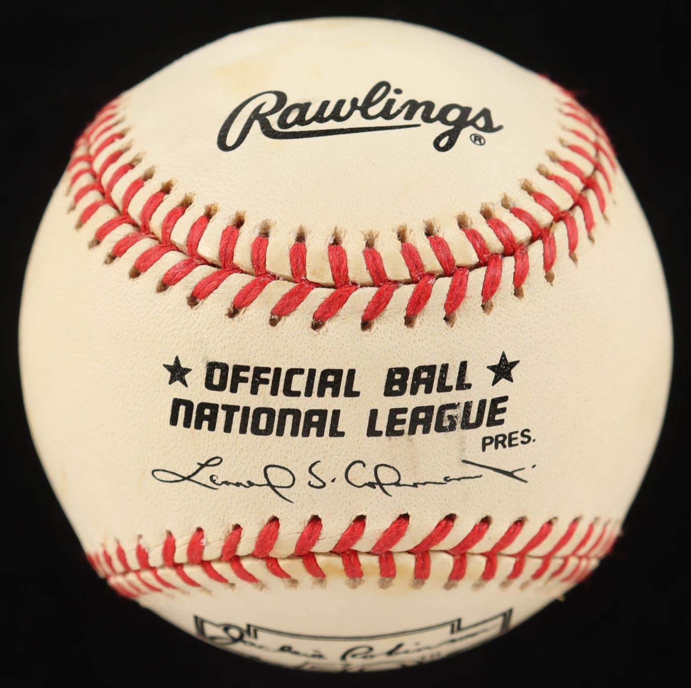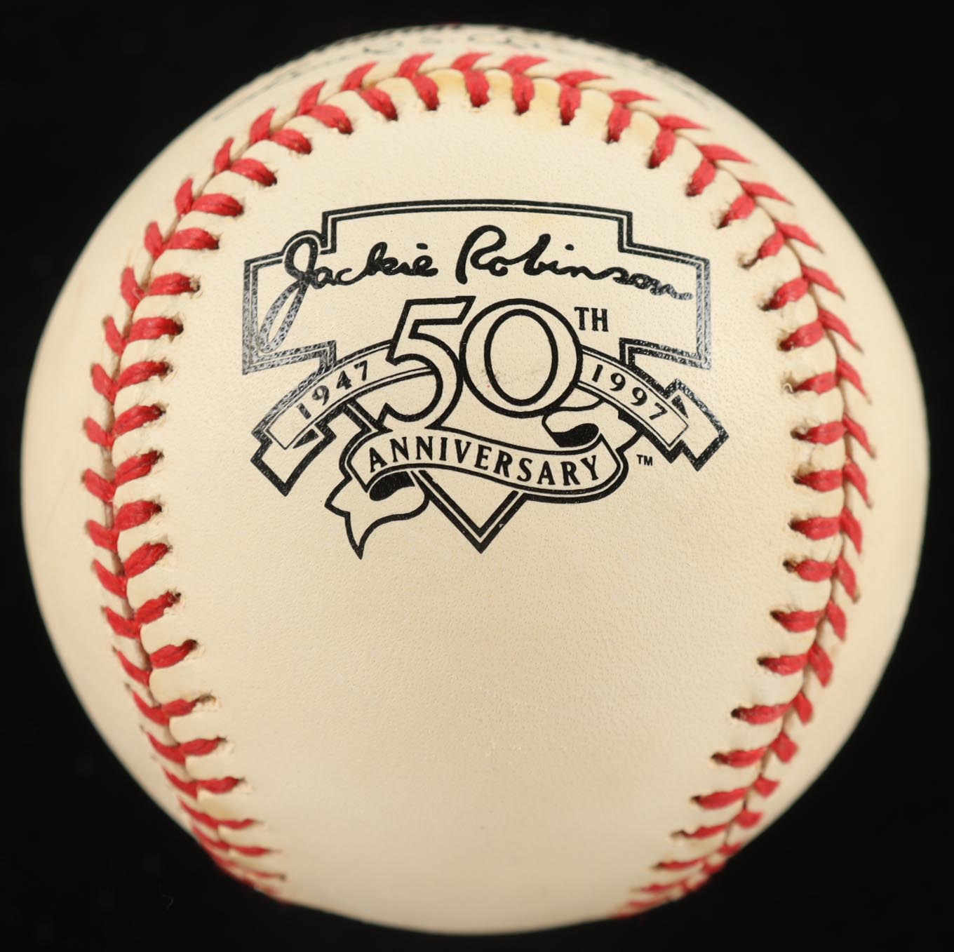 Rawlings Official National League Jackie Robinson 50th Anniversary logo baseball. Note that the item is unsigned. Please see photos for more details regarding the condition of the item. The display case and Jackie Robinson pin are included in the listing as shown above.