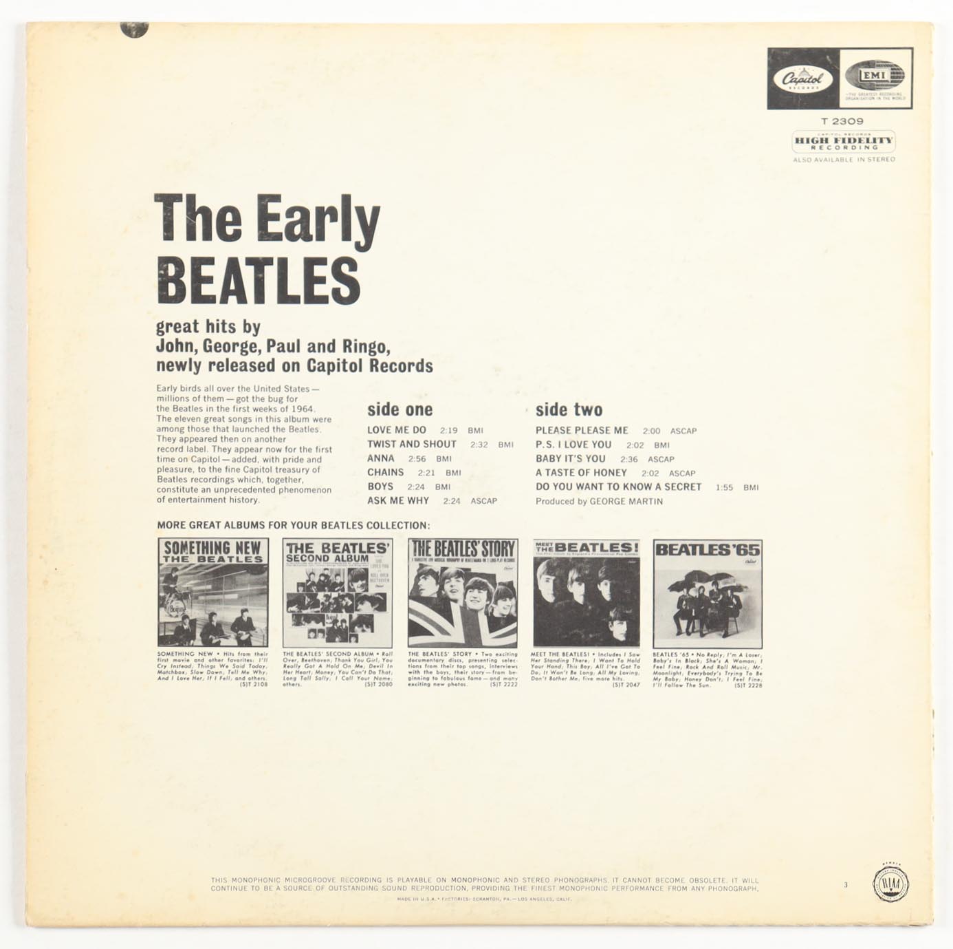 The Beatles "The Early Beatles" Vintage Vinyl LP Album with Record