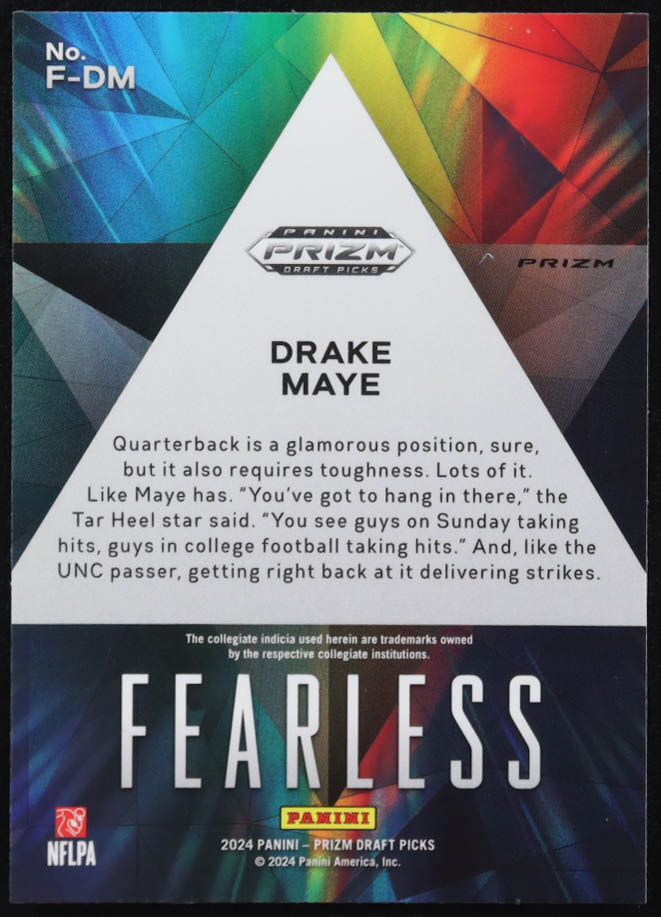 Drake Maye 2024 Panini Prizm Draft Picks Fearless Red Ice #4 RC