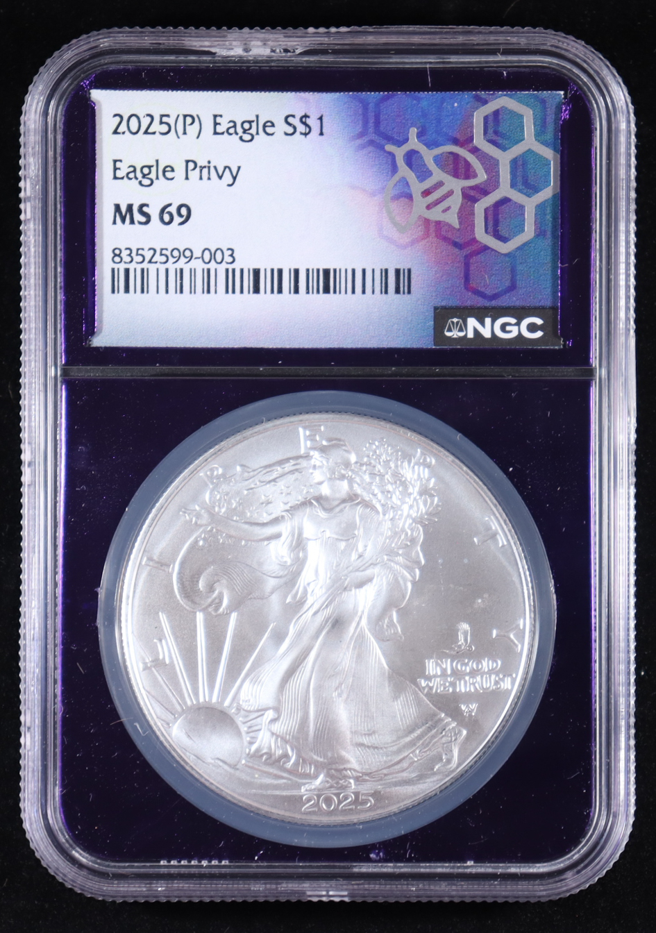 2025(P) American Silver Eagle, Eagle Privy #/500,000 (NGC MS69)