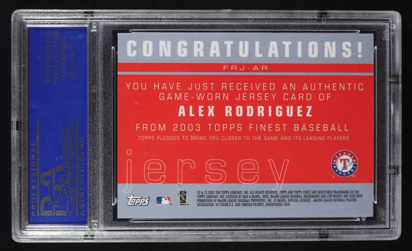 Alex Rodriguez 2003 Topps Finest Relics Game-Used Jersey #FRJ-AR (PSA 10)