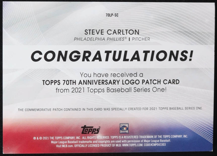 Steve Carlton 2021 Topps 70th Anniversary Commemorative Logo Patches #70LPSC