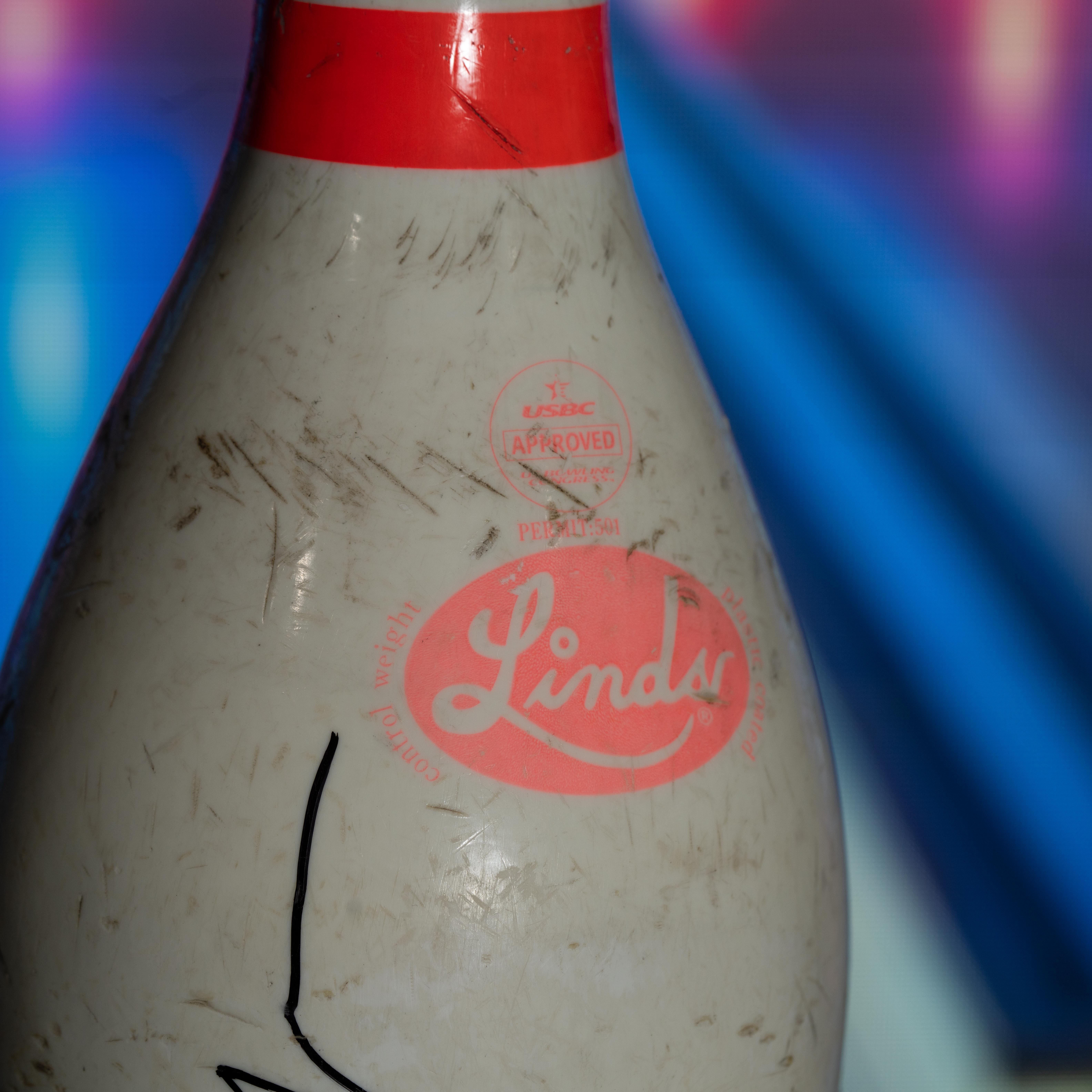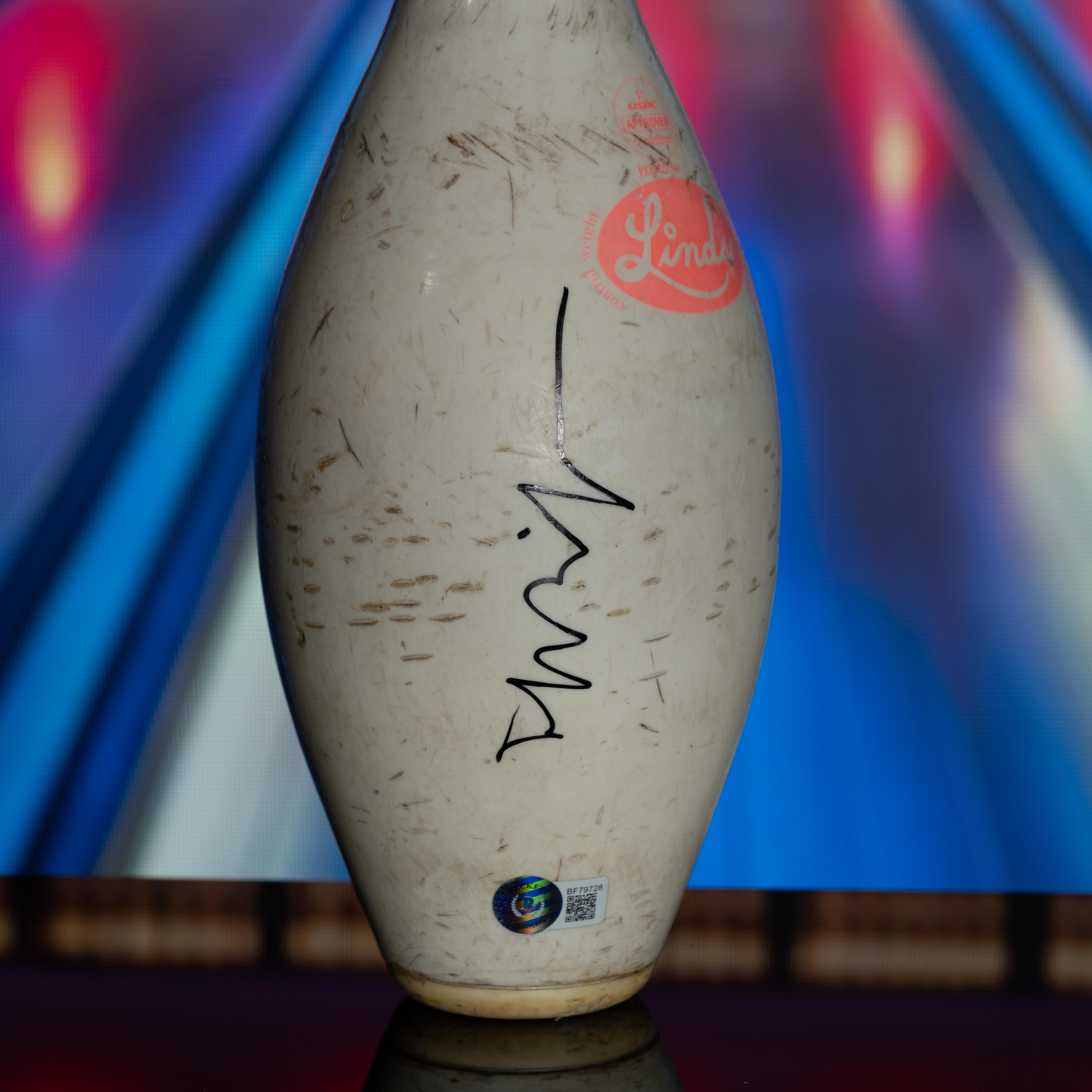 The bowling pin includes an official Beckett Authentication Services serially numbered hologram for authenticity purposes.