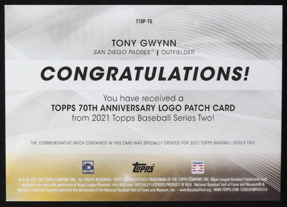 Tony Gwynn 2021 Topps 70th Anniversary Commemorative Logo Patches #T70PTG