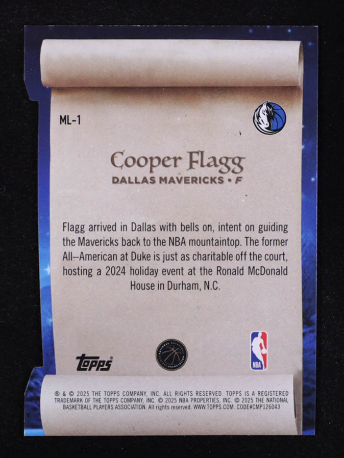 Cooper Flagg 2025-26 Topps Holiday Making The Nice List #ML1 RC