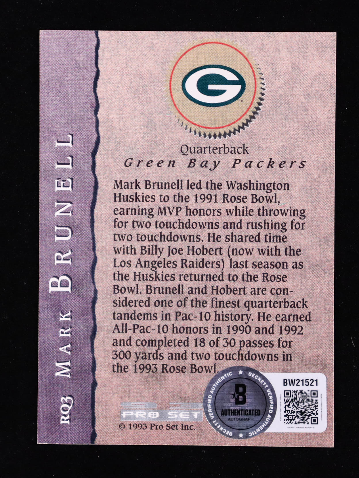 Mark Brunell Signed 1993 Pro Set Rookie Quarterbacks #RQ3 with Glass Display Case RC (Beckett)