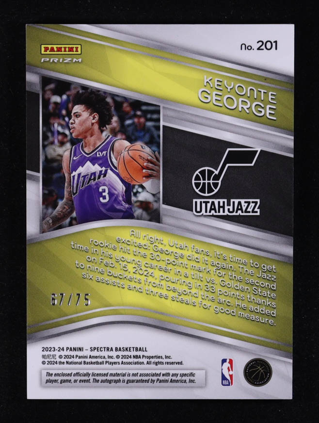 Keyonte George 2023-24 Panini Spectra Rookie Jersey Autographs Supernova JSY AU #201 #67/75 RC