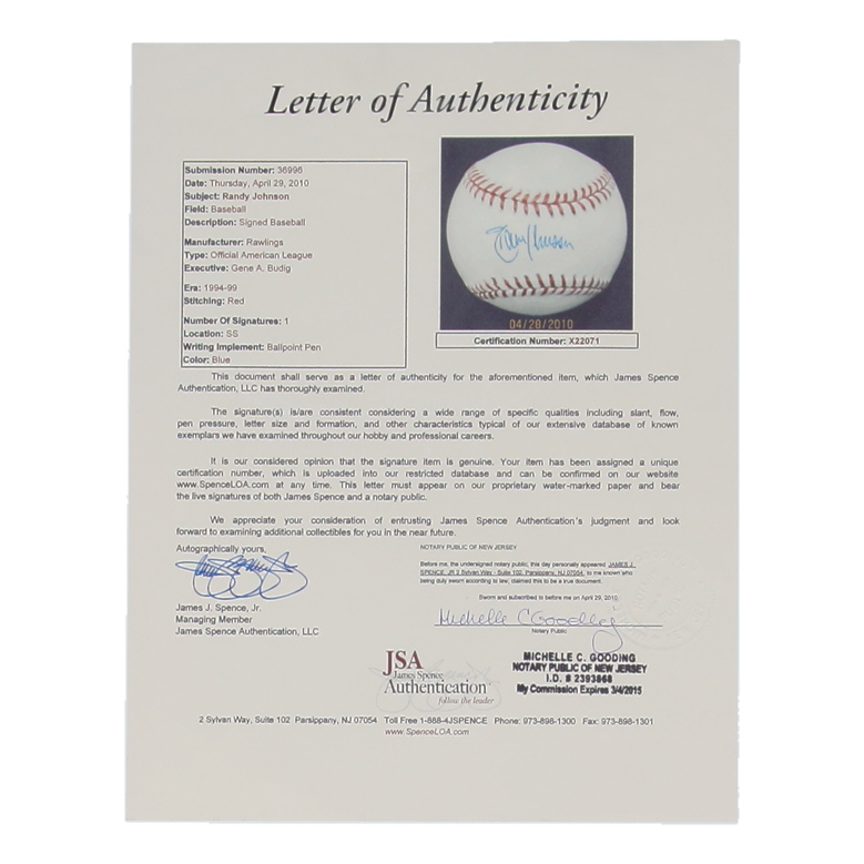 Randy Johnson Signed OAL Baseball (JSA)