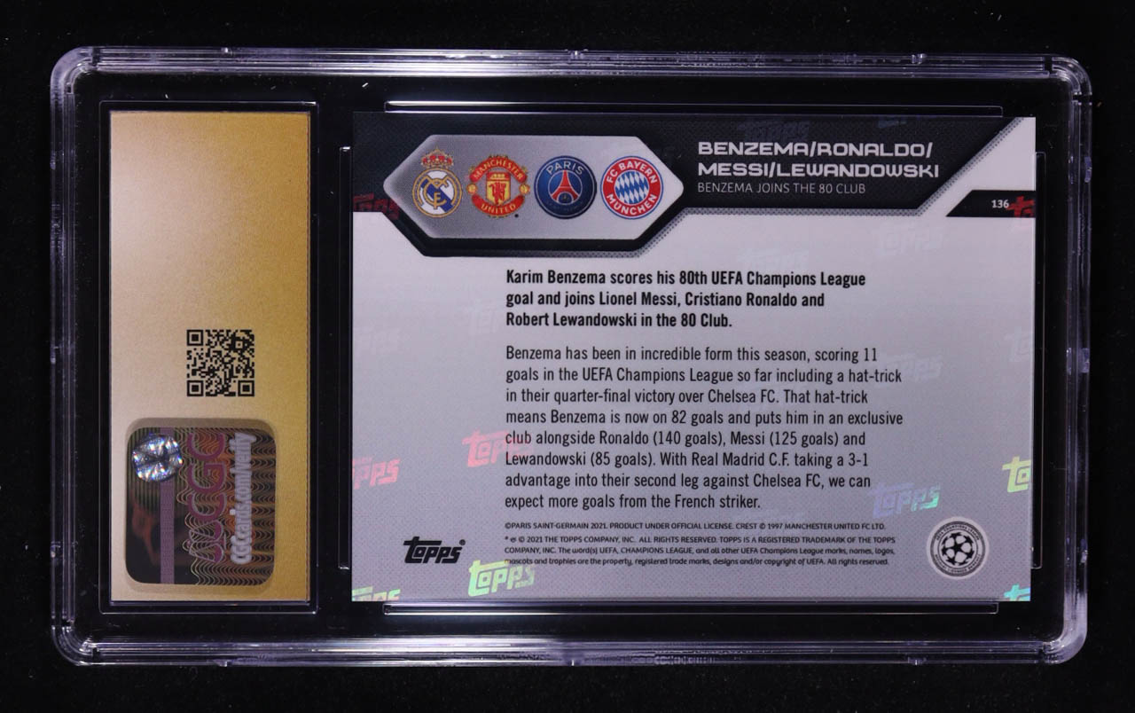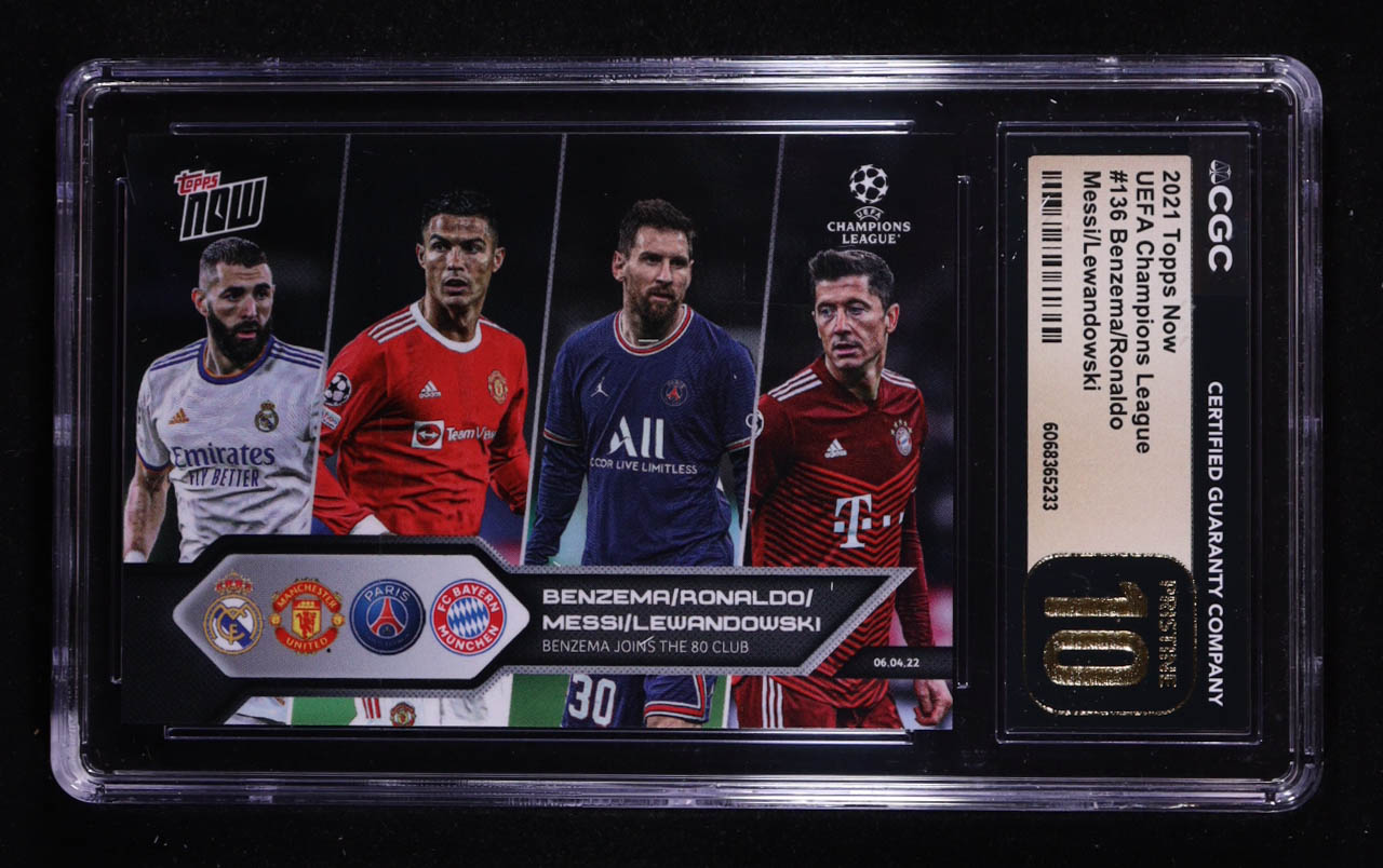 Karim Benzema / Robert Lewandowski / Lionel Messi / Cristinao Ronaldo 2021-22 Topps Now UEFA Champions League #136 (CGC 10 | Pristine Black Label)