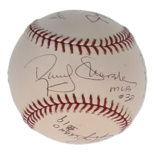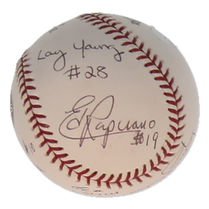2003 World Series Umpires | 2003 World Series Logo Baseball Signed by (6) with Tim Welke, Randy Marsh, Larry Young (JSA)