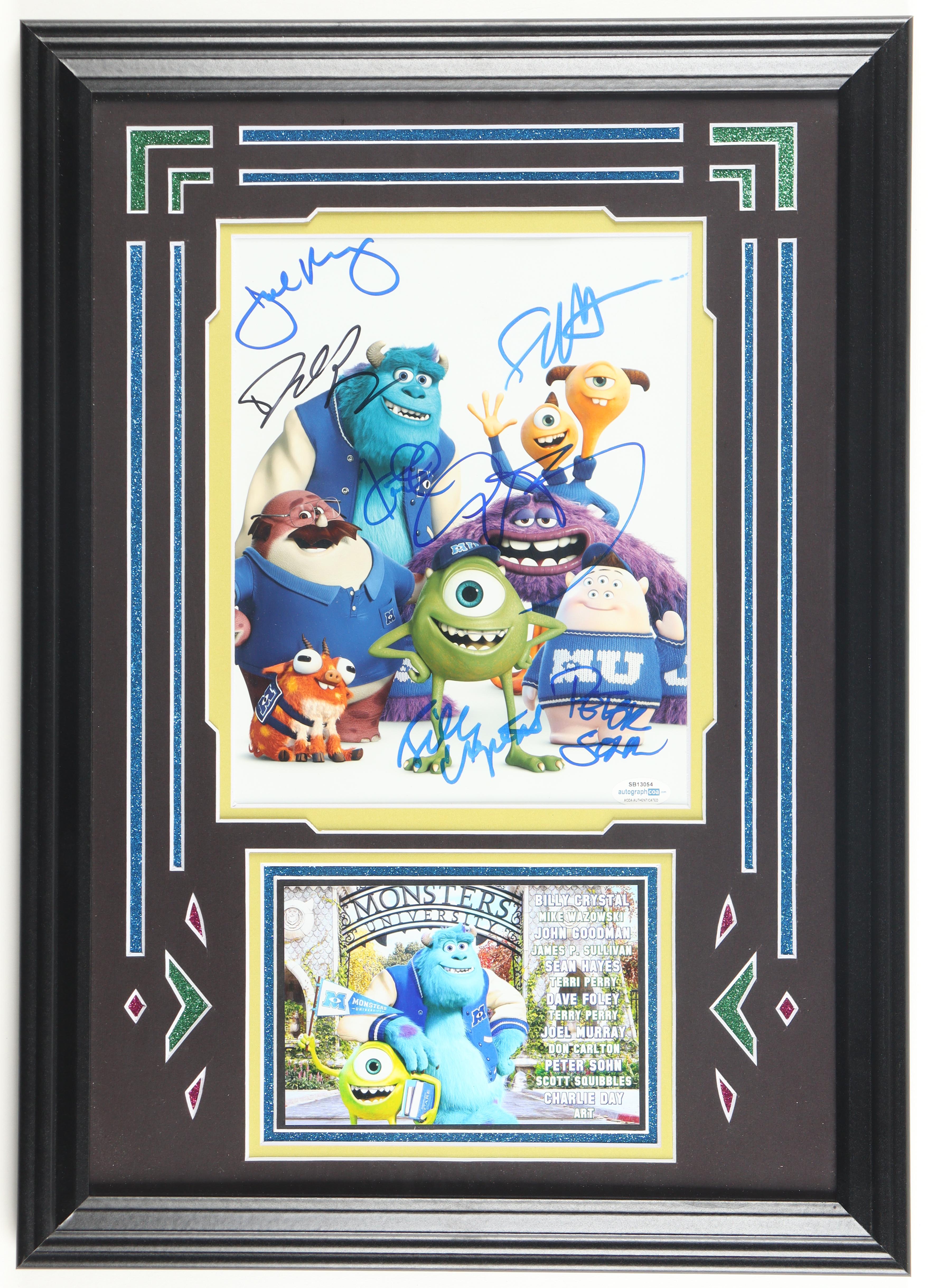 Custom frame measures 15" x 21" in size and features a photo that has been hand-signed by (7) members of the cast from "Monsters University"! Signers featured on the photo include: