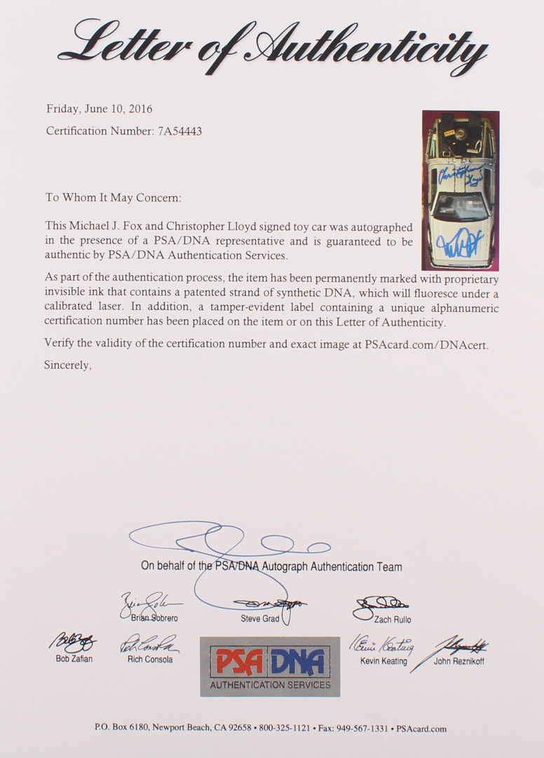Michael J. Fox & Christopher Lloyd Signed "Back to the Future" DeLorean 1:24 Diecast Car (PSA LOA)