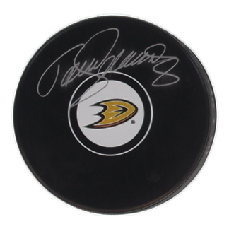 Anaheim Ducks Logo Hockey Puck. Hand-signed by Teemu Selanne (HOF). Please note, the signature has been smudged.