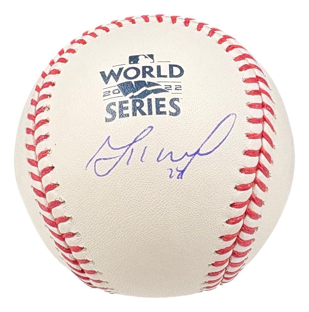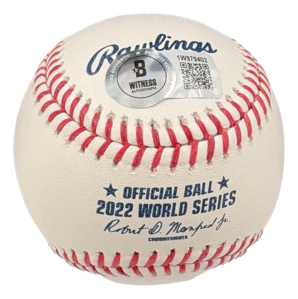 Rawlings Official 2022 World Series baseball has been hand-signed by Jose Altuve (Houston Astros).