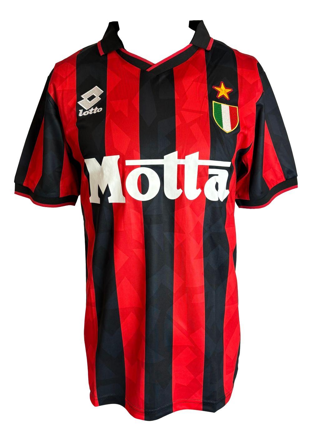 Lotto jersey with everything pressed on, size L. Hand-signed by Paolo Maldini.