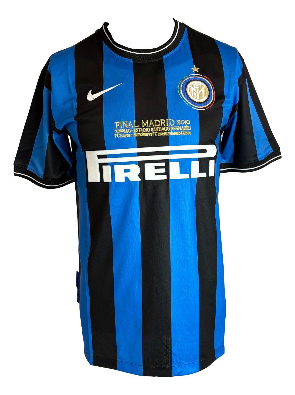 Nike jersey with everything pressed on, size L. Hand-signed by Javier Zanetti.
