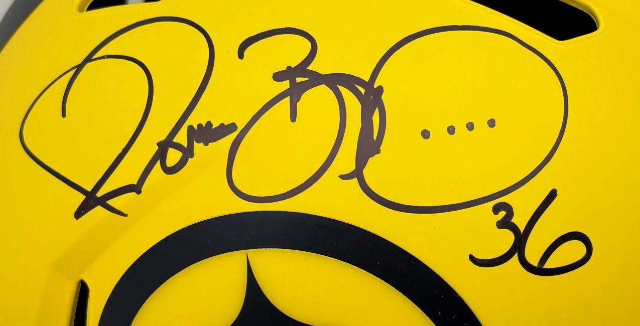 Riddell Pittsburgh Steelers full-size rave alternate speed replica helmet. Hand-signed by Jerome Bettis (HOF).
