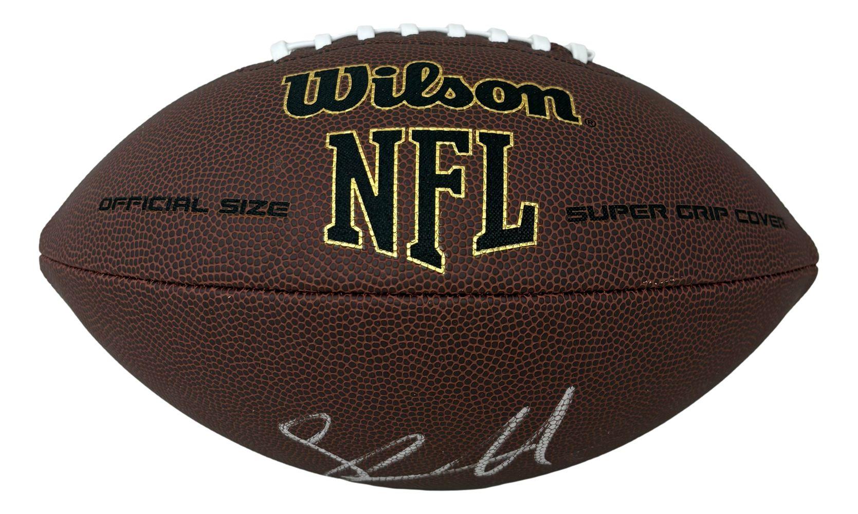 Wilson Super Grip NFL football has been hand-signed by Shawn Merriman (Los Angeles Chargers).