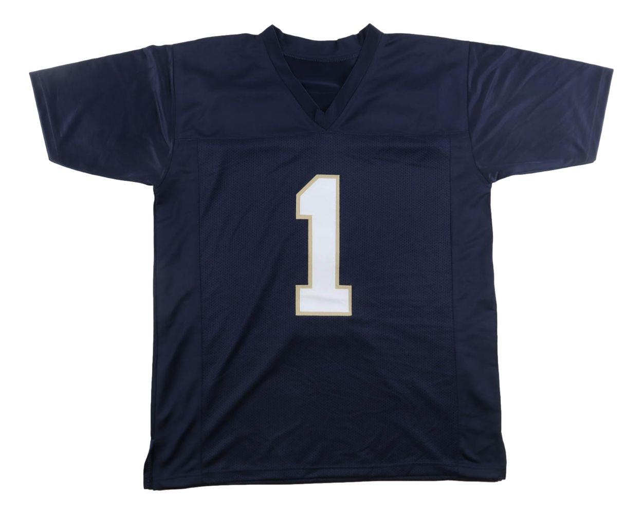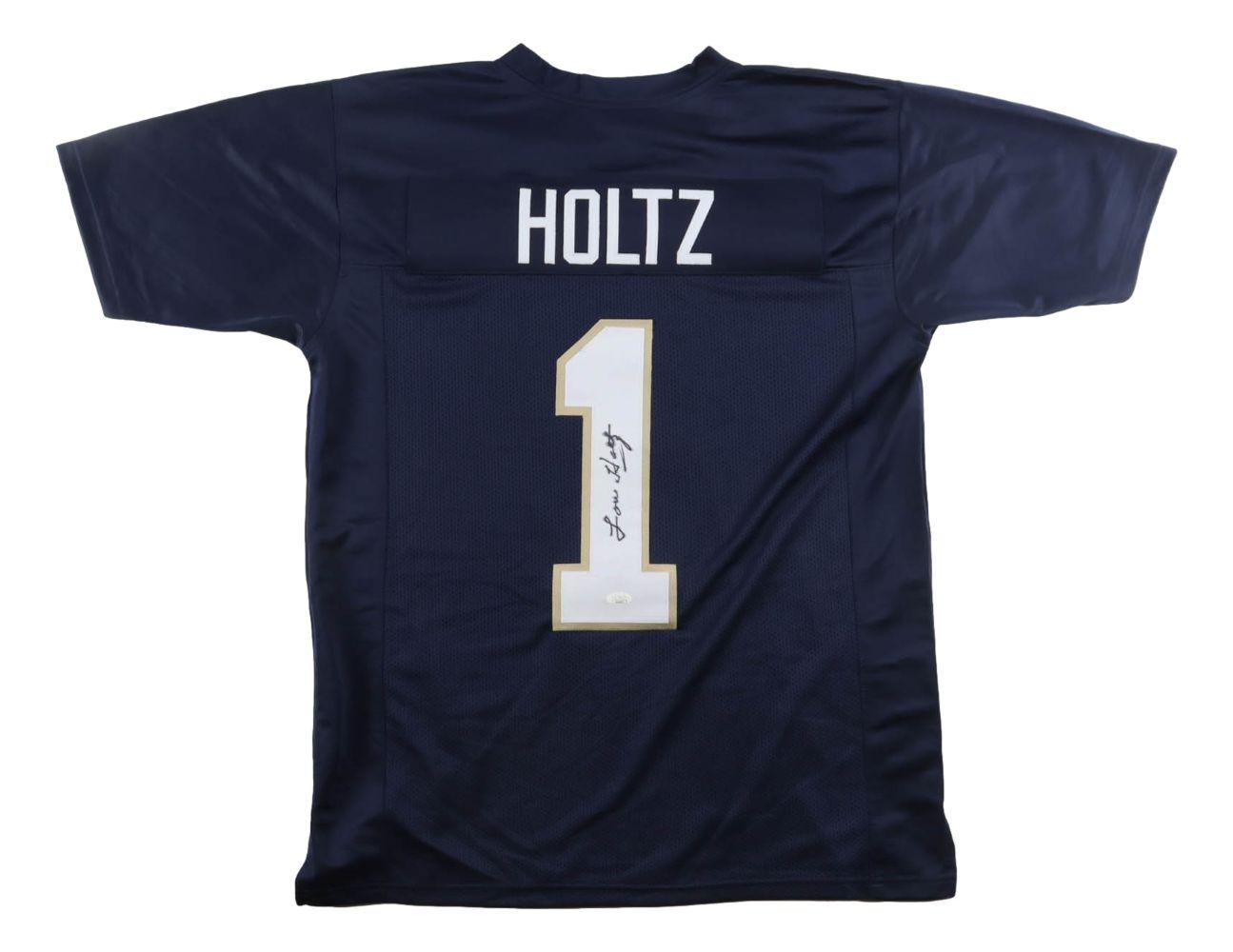Custom jersey with everything sewn on, size XL. Hand-signed by Lou Holtz.