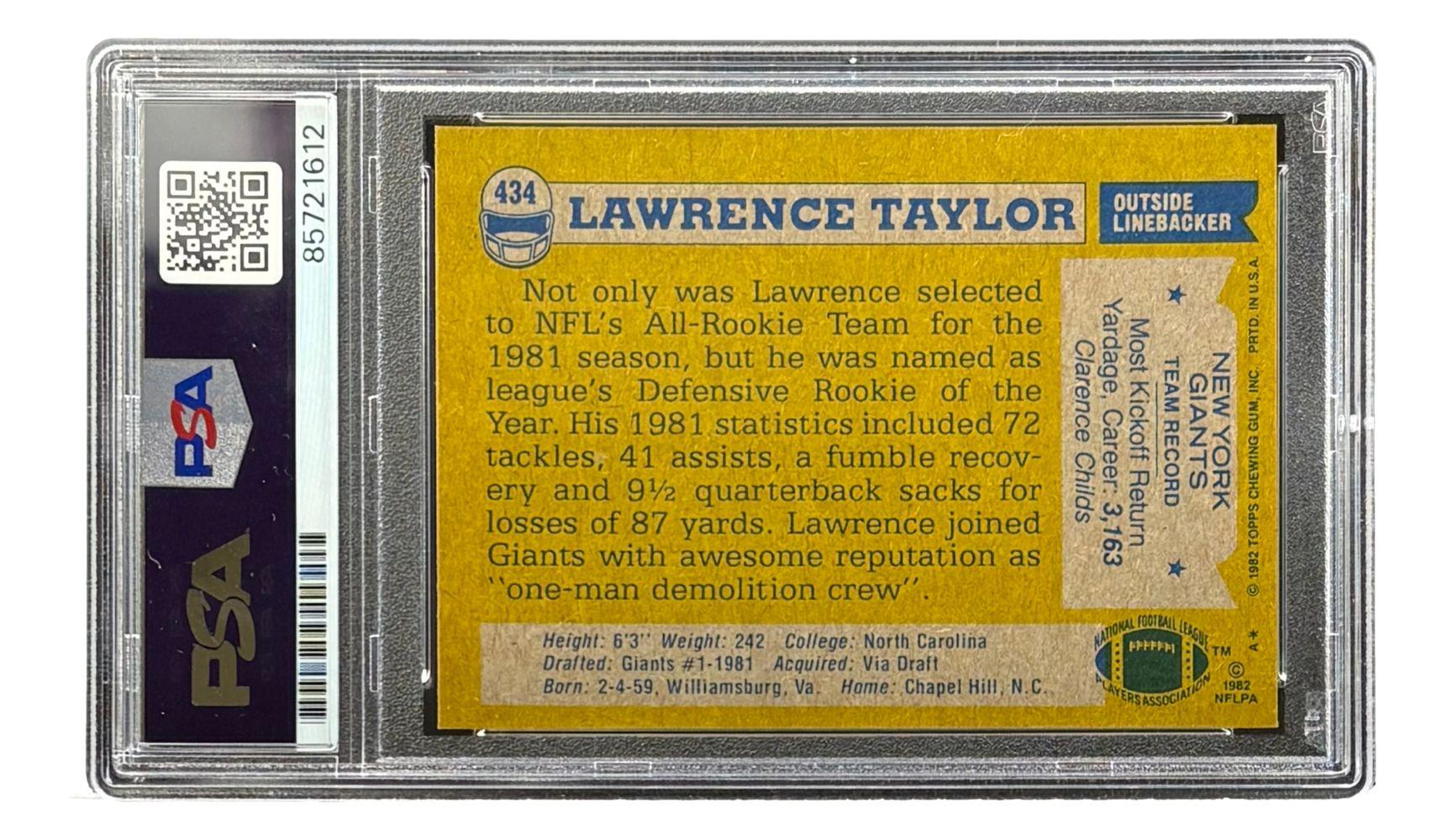 Lawrence Taylor Signed 1982 Topps #434 RC (PSA)
