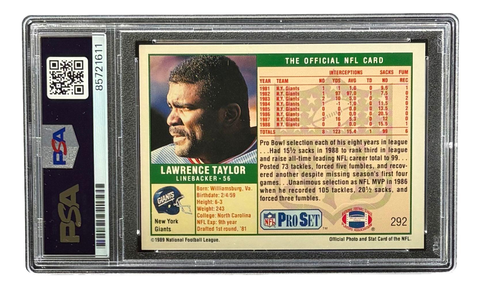 Lawrence Taylor Signed 1989 Pro Set #292 (PSA)