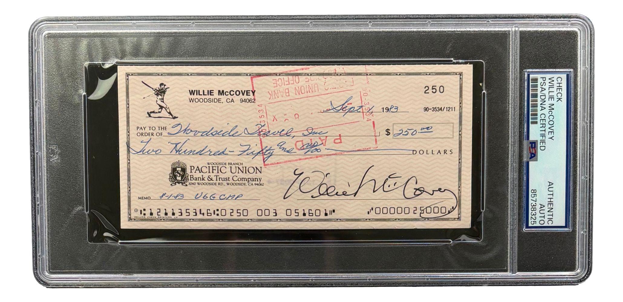Willie McCovey Signed 1983 Personal Bank Check (PSA)